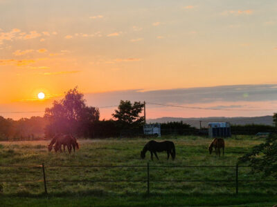 Au rez-de-chaussée, quelques pas vers le salon où crépite peut-être un feu en hiver. Dehors, la terrasse, la piscine en été, les jeux qui vous attendent avec leurs promesses simples – un baby-foot, un flipper, une partie de ping-pong quand l’envie vous prend. Et partout, cette présence apaisante de chevaux heureux, au repos ou broutant sereinement, qui rappellent à chaque instant l’importance de ralentir. Vous êtes venu·e vous reposer. Vous allez repartir régénéré·e.